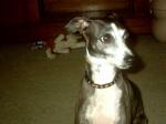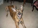 Yay! I figured it out! This is a picture of Dr. doug playing with his toy. I got him in this pose by getting him all exited, and then I flung the toy up in the air, and took the picture!